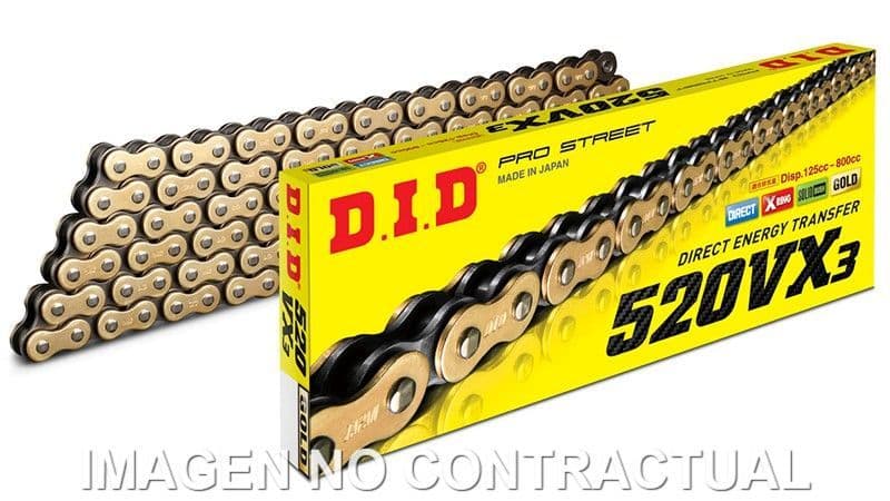- Cadenas con retenes X-ring oro de paso 520, 114 eslabones y cierre de remache